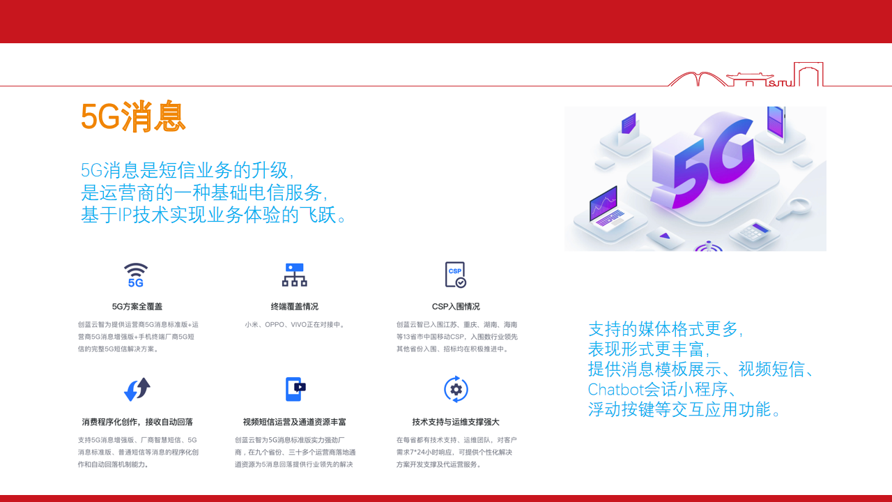 三、5G消息:是短信業(yè)務(wù)的升級,是運營商的一種基礎(chǔ)電信服務(wù),基于IP技術(shù)實現(xiàn)業(yè)務(wù)體驗的飛躍,支持的媒體格式更多,表現(xiàn)形式更豐富。如下圖所示: